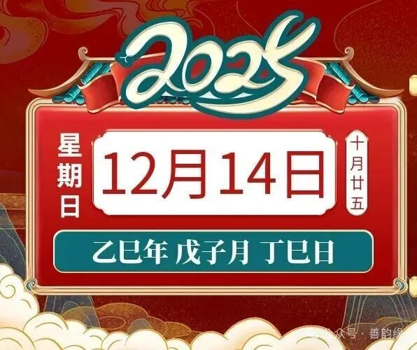 2025年12月14日,星期日,农历十月廿五 (乙巳年戊子月丁巳日),法定节假日。